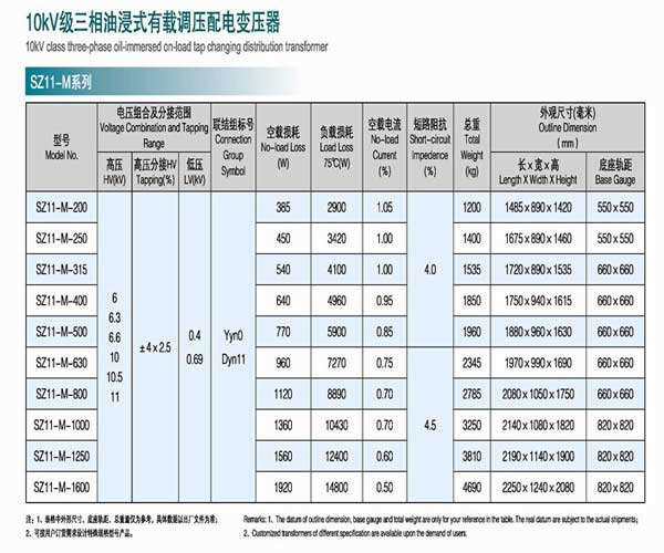 注:可根據(jù)用戶要求提供特殊環(huán)境使用條件下運行的變壓器。