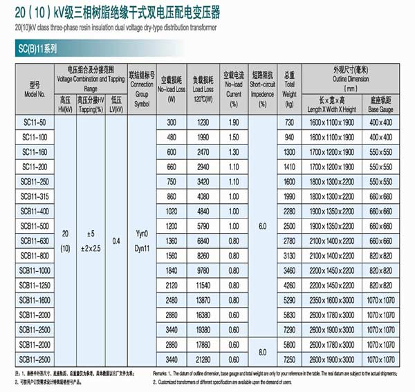 Note: You can provide operating under special environmental conditions of the transformer according to user requirements.