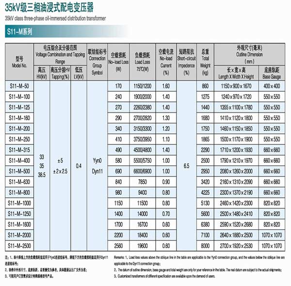 S11-M Series 35kV class three-phase oil-immersed distribution transformers